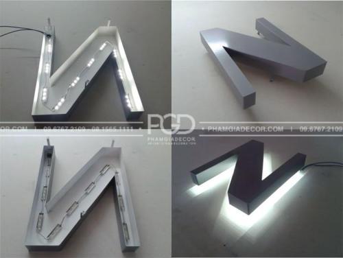 Chữ nhôm nổi không gờ giấu viền có thể được bắt chân bát tạo hiệu ứng sáng chân đẹp đẽ, quy cách dán kín sẽ dễ tạo thẩm mỹ cho hiệu ứng sáng chân hơn